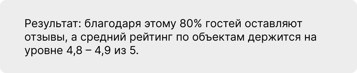 Такая коммуникация не выглядит навязчивой, зато работает эффективно: гости чувствуют внимание, и у них появляется мотивация оставить отзыв.