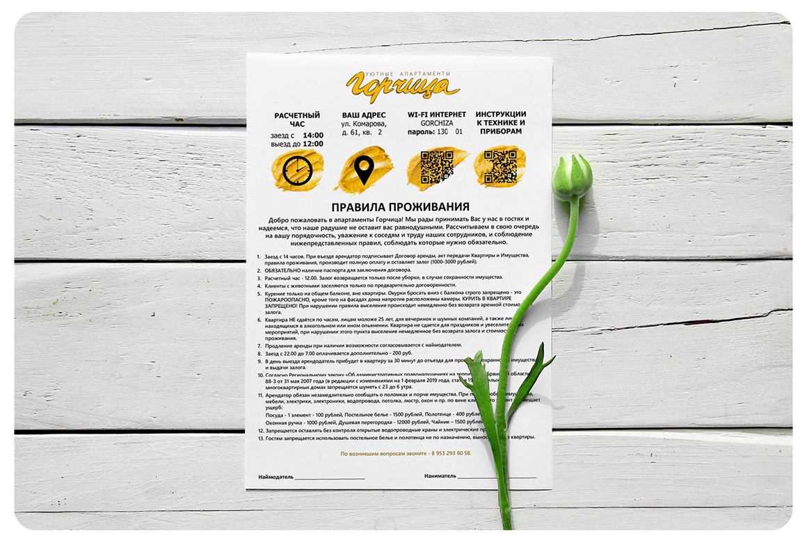 У меня есть красивая инструкция. Я отправляю её всем гостям вместе с текстовым приветственным сообщением о том, как заселиться. Там информация о Wi-Fi, времени заезда/выезда и различные полезности.