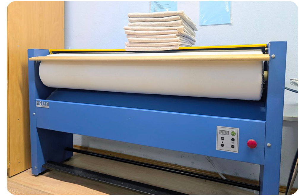 Сейчас мы можем позволить себе часто стирать шторы, подушки, одеяла, покрывала, наматрасники. В бытовой машине этого так просто не сделать, а профессиональная техника на полный цикл стирки расходует меньше ресурсов. Промышленную стиральную машину мы включаем один раз, а бытовую на такой же объём – шесть. И по времени получается экономия, так как в промышленную заливается горячая вода, а не греется, как в бытовой. Гладить на гладильном катке тоже быстро и просто.