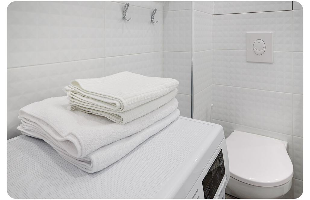 К концу лета 2022 года у нас уже было три объекта (квартира №3), в планах стояло ещё три. Максимальное количество мест размещения должно было увеличиться с 16 до 35. Мы поняли, что такой объём белья будет тяжело обслуживать, и задумались о прачечной.
