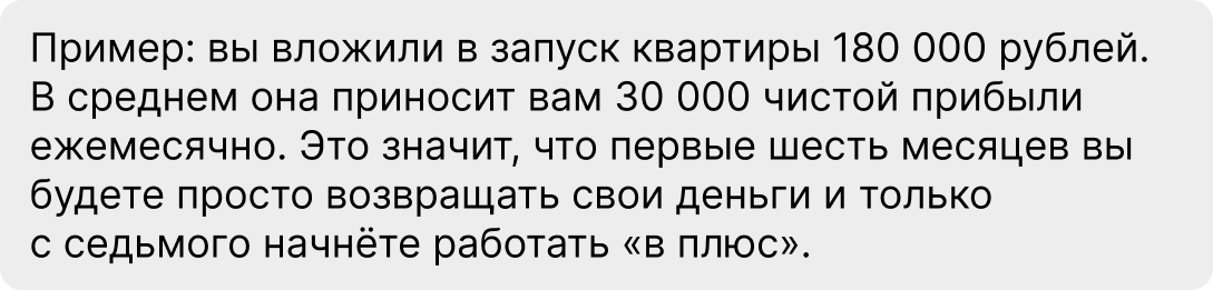 Используя эту модель, вы берёте в управление чужую, уже готовую к сдаче квартиру. Ваша задача – обеспечить её максимальную загрузку и взять на себя всю операционку. За это вы получаете процент от чистой прибыли, обычно 20–30%.