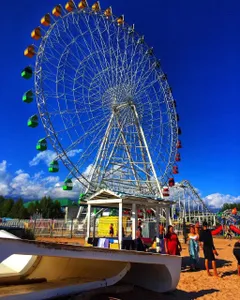 На берегу аттракционы, дискоклубы, теплоход, все развлечения, организация экскурсий