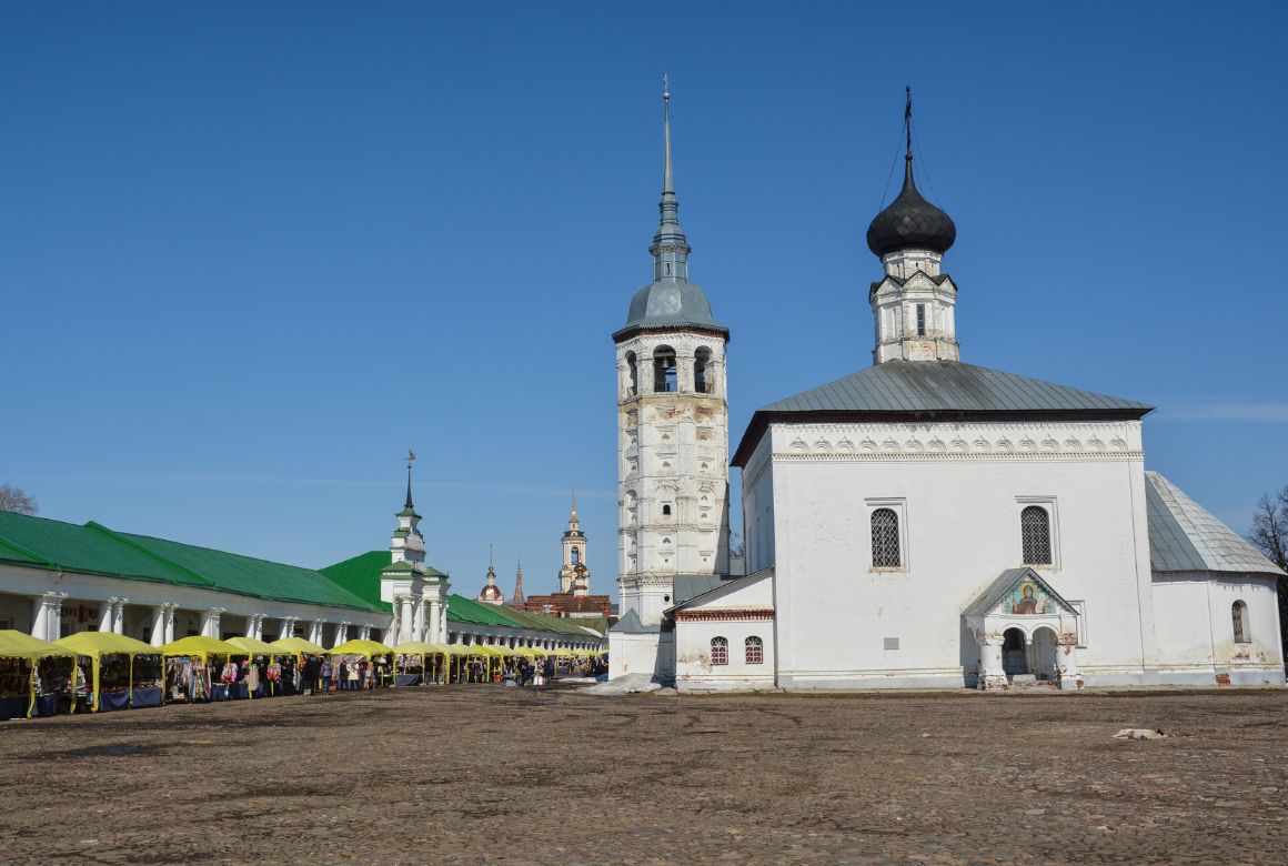 Кроме церквей, в Суздале стоит посмотреть Торговые ряды — объект культурного наследия и один из символов города. Это здание 19-го века с двумя крытыми галереями и колоннами на фасаде. Перед ними раскинулась мощеная площадь, сохранившая свой облик с древних времен.
