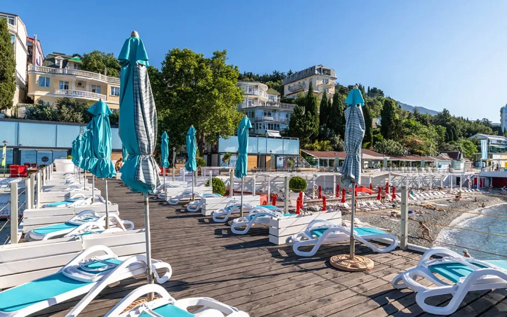 «Опера Прима» — суперсовременный жилой комплекс в Ялте, который предлагает своим жильцам исключительный по уровню комфорта пляжный отдых. Вход на территорию бесплатный, все остальное оплачивается отдельно на месте. Береговая линия широкая, вход в море удобный, а галька мелкая и почти не ощущается под ногами. Арендуйте бунгало или шезлонг или побалуйте дух и тело современным спа-уходом. Работают фитнес-зал, массажный кабинет и салон красоты. Учтите, высокие дома жилого комплекса могут отбрасывать тень на пляж после 16 часов.