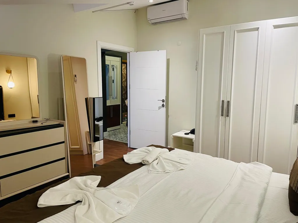 Очень грязный номер, на кухне в шкафу со сковородками было что-то рассыпано, на столе в воде лежала тухлая доска, холодильник снаружи весь грязный, микроволновка вся грязная и липкая, на потолке огромная паутина. Где-то оторваны обои под потолком и на самом потолке большие пятна, видимо, номер затапливало, т. к. дверь в ванную тоже набухшая внизу была. В ванной комнате непонятно как вырезано отверстие в потолке под лампу. Тумбочка с зеркалом была вся в желтых грязных пятнах и на ней были волосы, вентилятор, видимо, вообще ни разу не мыли, т. к. он оброс пылью. В спальне не работают прикроватные светильники. Когда подняли простынь, то увидели целую кучу волос, пододеяльника не было, пришлось идти за ним, и он оказался весь в желтых пятнах. Шторы все висели непонятно как. Единственное хорошее только, что был включен завтрак и он был достаточно разнообразный. Номер явно не стоит своих денег.