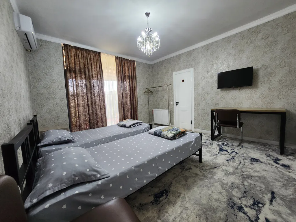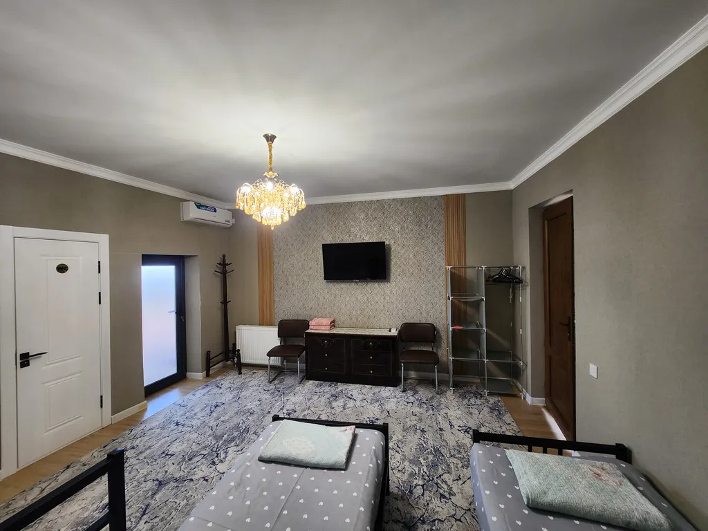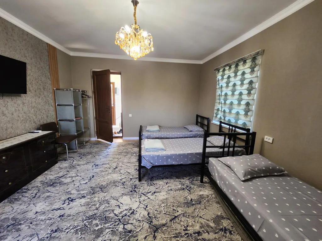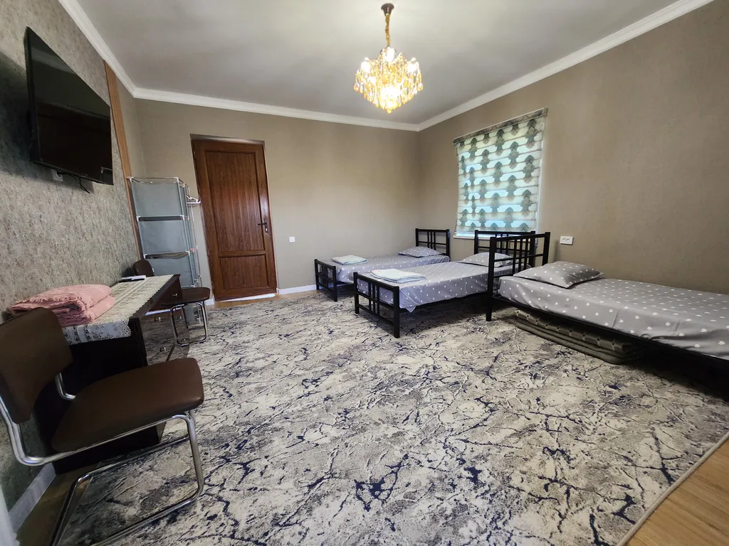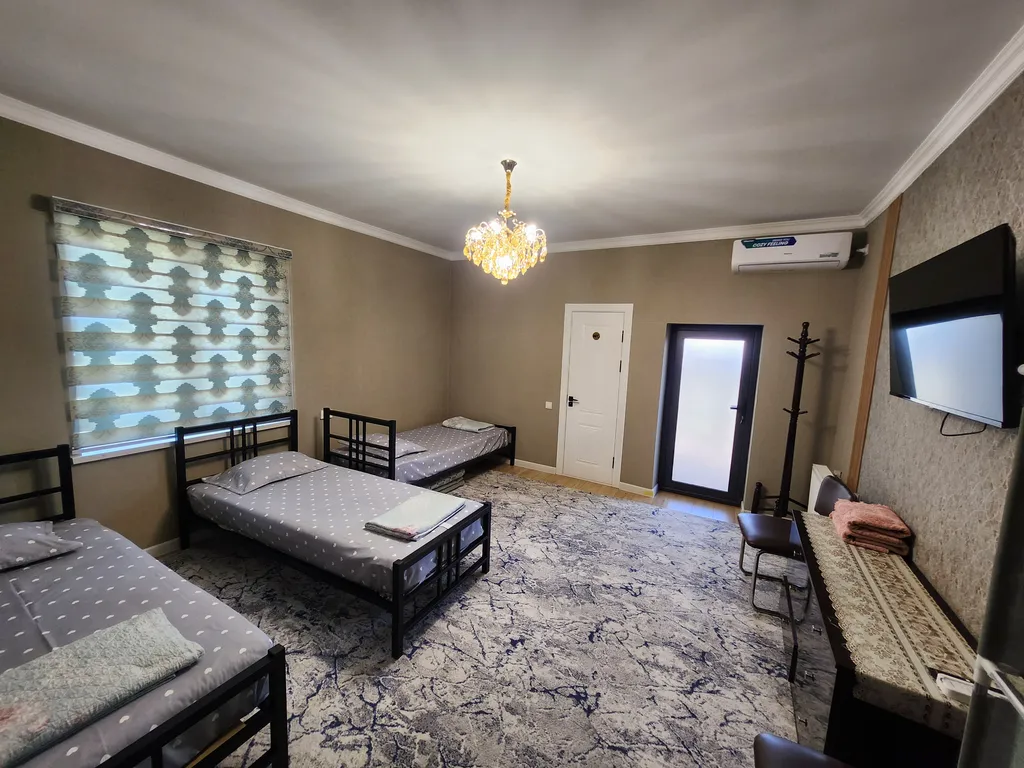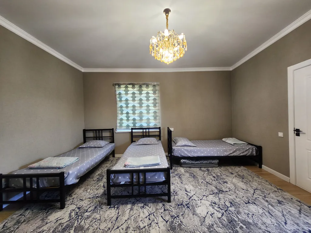 Прекрасный гостевой домик предоставляет жильё для больших семей и групп, также для корпоративных гостей для проживания до 15 человек. В доме имеется 5 спальных комнат с отдельными кроватями, отдельная терасса, общая кухня, обеденная зона и уютный дворик. В каждом номере есть душевая комната и туалет. Также кондиционер, смарт ТВ, бесплатный WiFi и всё необходимое для проживания. Рядом есть Супермаркет 24/7, кафе, рестораны, банк и транспорт в пешой доступности.