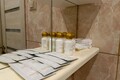 В ванной комнате туалетные принадлежности, халат, фен, тапочки.