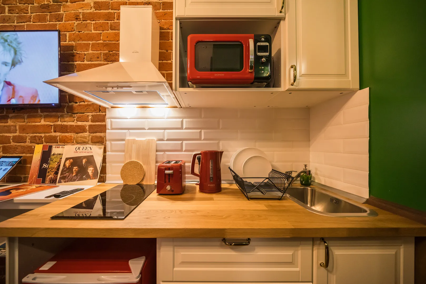 Мама ро на чистых прудах, студия 21 "британская" - это 4-местная студия на чистых прудах, всего в 15 минутах от кремля. В нашей студии площадью в 35 кв. М. Вы найдете: двуспальную кровать и диван-кровать, душ, фен, обеденный стол, холодильник, микроволновку и тостер, утюг и гладильную доску, электрический камин, apple tv, телевизор с плоским экраном, ipad, мини-библиотеку, бесплатный wi-fi, и все это в непосредственной близости от чистых прудов, кремля и, разумеется, бесконечного количества уютных кафе и баров. В студии может размещаться до 4 человек, время заезда - c 14 до 22 часов, выезда - не позднее полудня.
