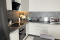 Кухня оборудована мебелью, посудой и бытовой техникой: холодильник, микроволновка, плита, духовка, чайник.