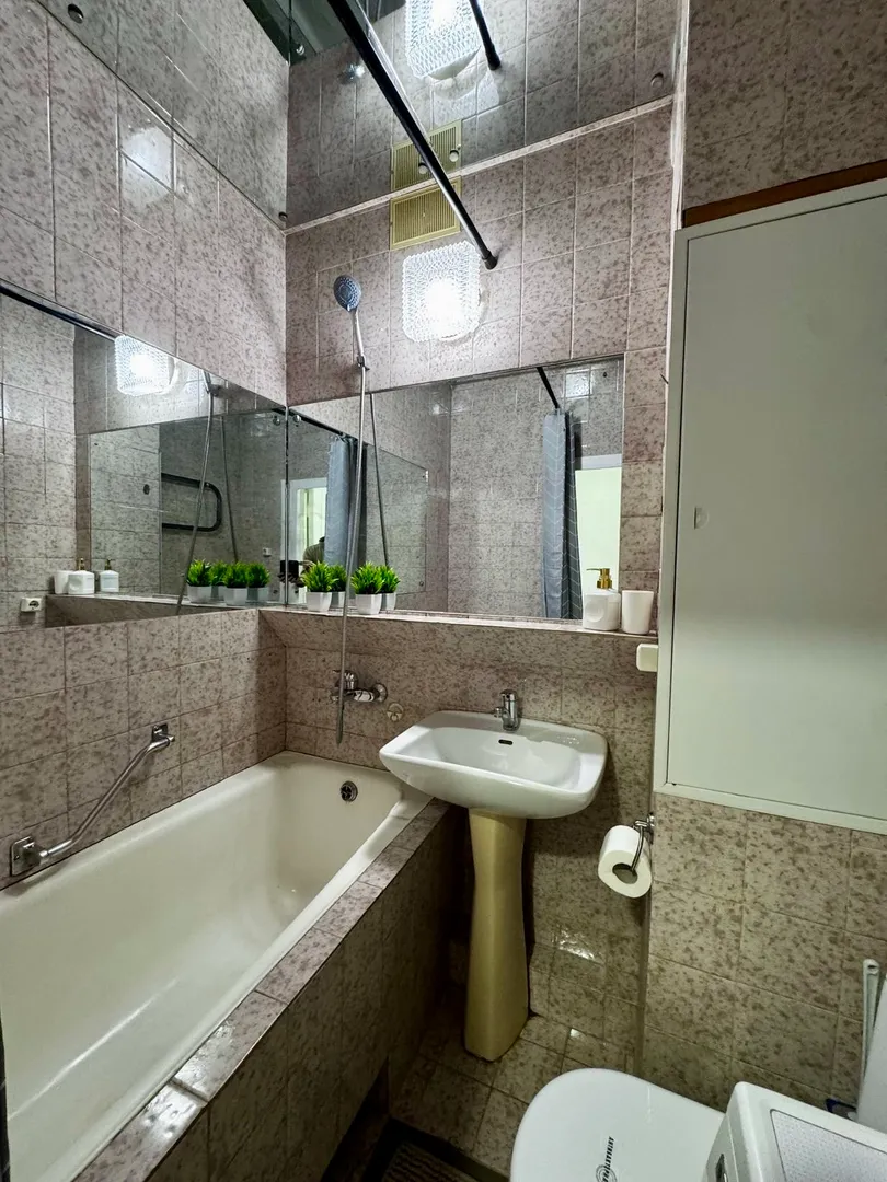 Ремонт далёко не свежий и современный, ванна была вся грязная, и помойте уже наконец зеркала. Кстати о них, во всей квартире только в ванной они есть и те грязные. С балкона дует ужасно, дверь не закрывается толком. Неудобные что диван, что кровать. Входная дверь очень плохо закрывается, слышимость с подъезда очень сильная. И поменяйте уже подушки, все максимально нееомфортные.