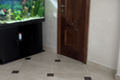 В большой комнате есть большой раздвижной диван, стол и стулья, шкаф, аквариум с красивыми рыбками и жк телевизор.
