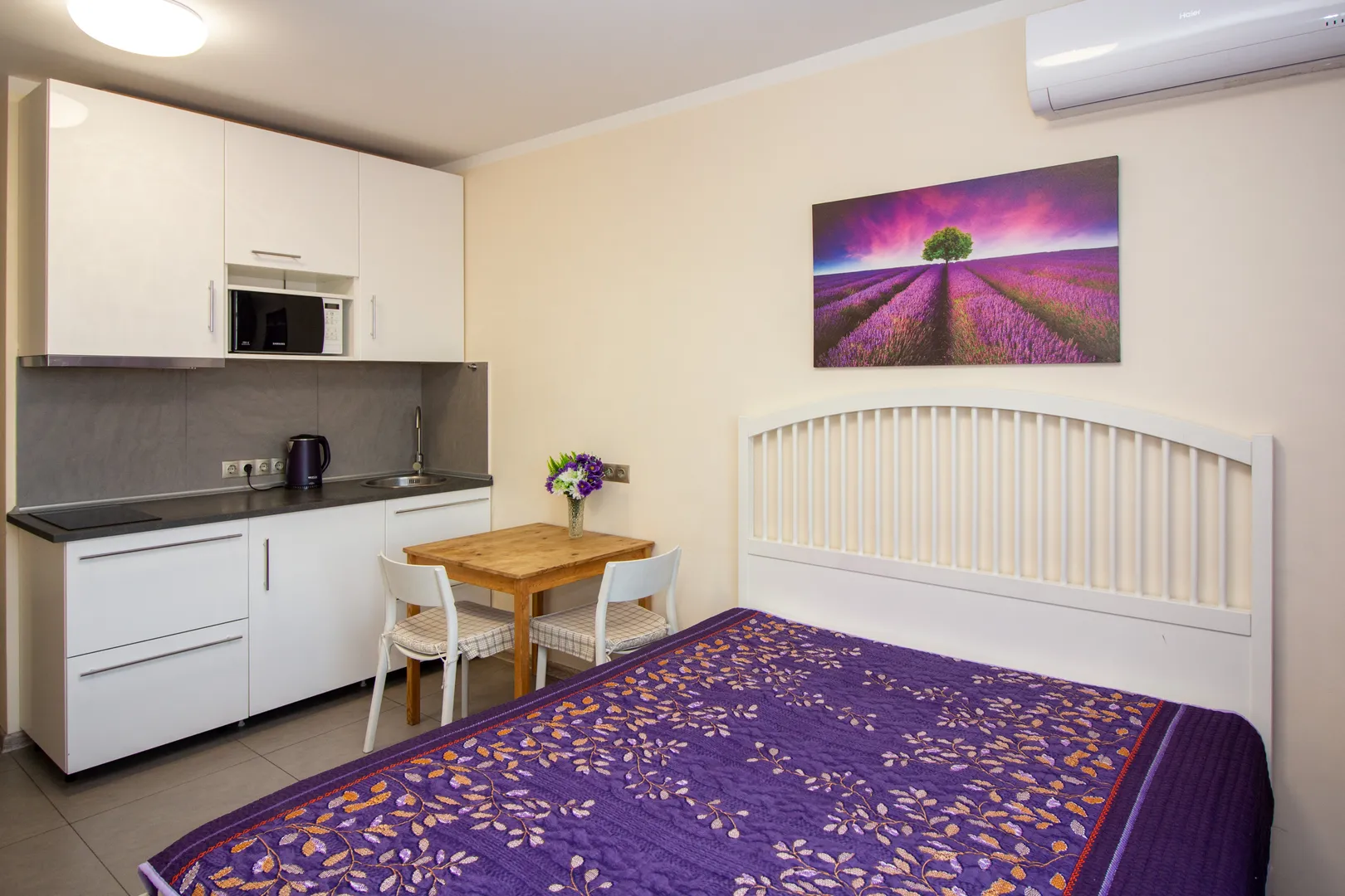 - хорошее расположение - пара минут до метро - маленькая уютная студия, ничего лишнего