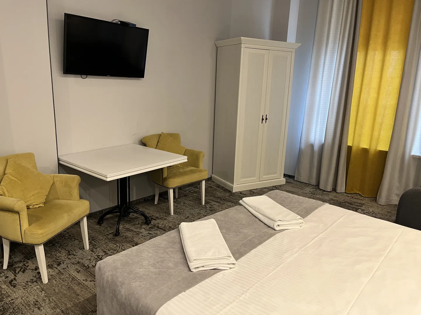 Двухкомнатный семейный номер с двуспальной кроватью, небольшим диваном-кроватью и микроволновой печью. Изысканная меблировка и декор, наличие wifi и телефонной связи. Номер оснащен мини-холодильником, электрическим чайником, чайными принадлежностями, телевизором, феном, кондиционером. Возможно для размещения семей с маленькими детьми. Постельное бельё и пушистые полотенца помогут создают домашнюю атмосферу. Ванная комната оснащена немецким сантехническим оборудованием. Площадь номера 22 кв. М.