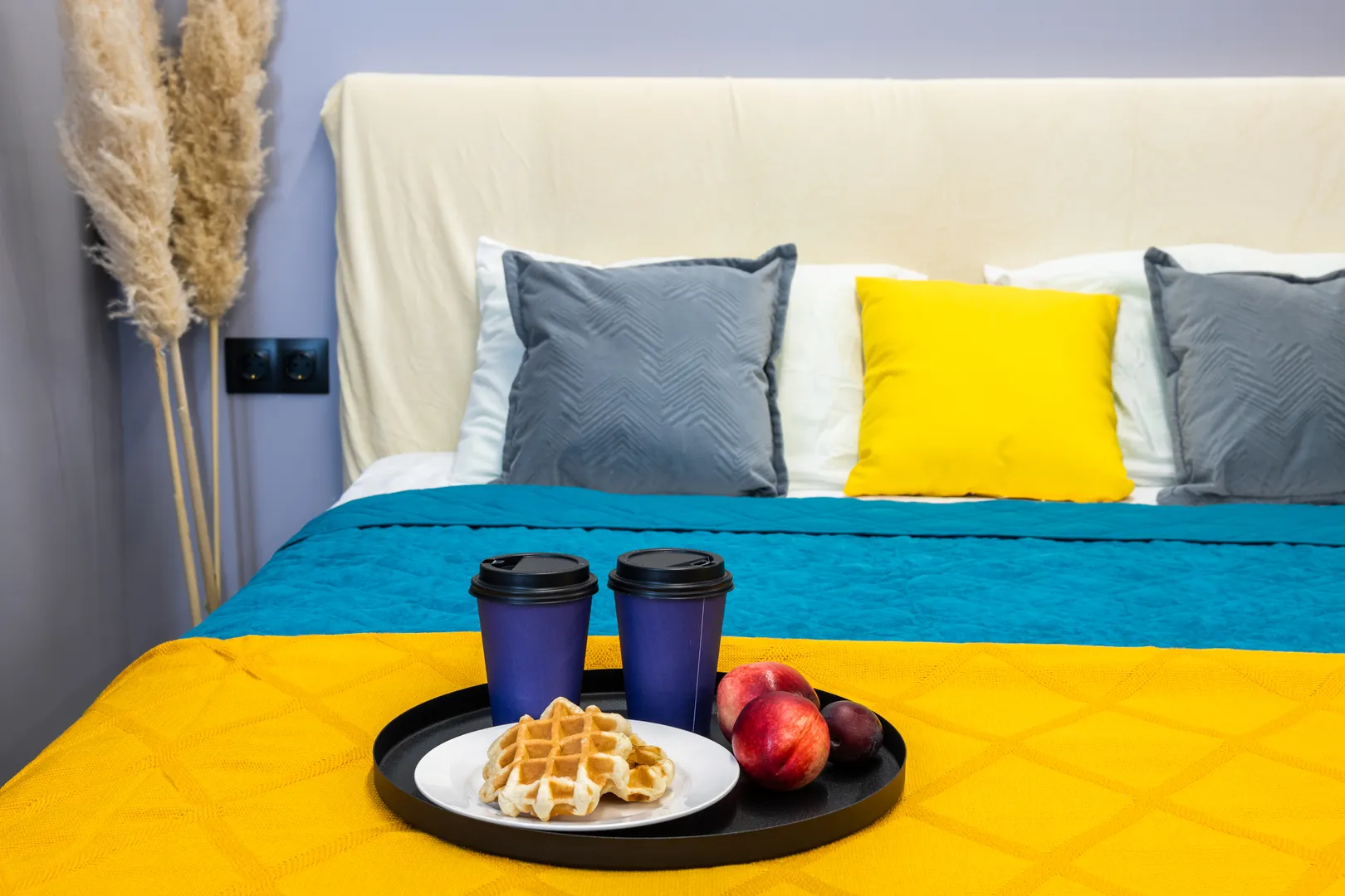 - Посуда, кухонные принадлежности, свежее постельное бельё и мягкие полотенца, чай, кофе, средства гигиены.