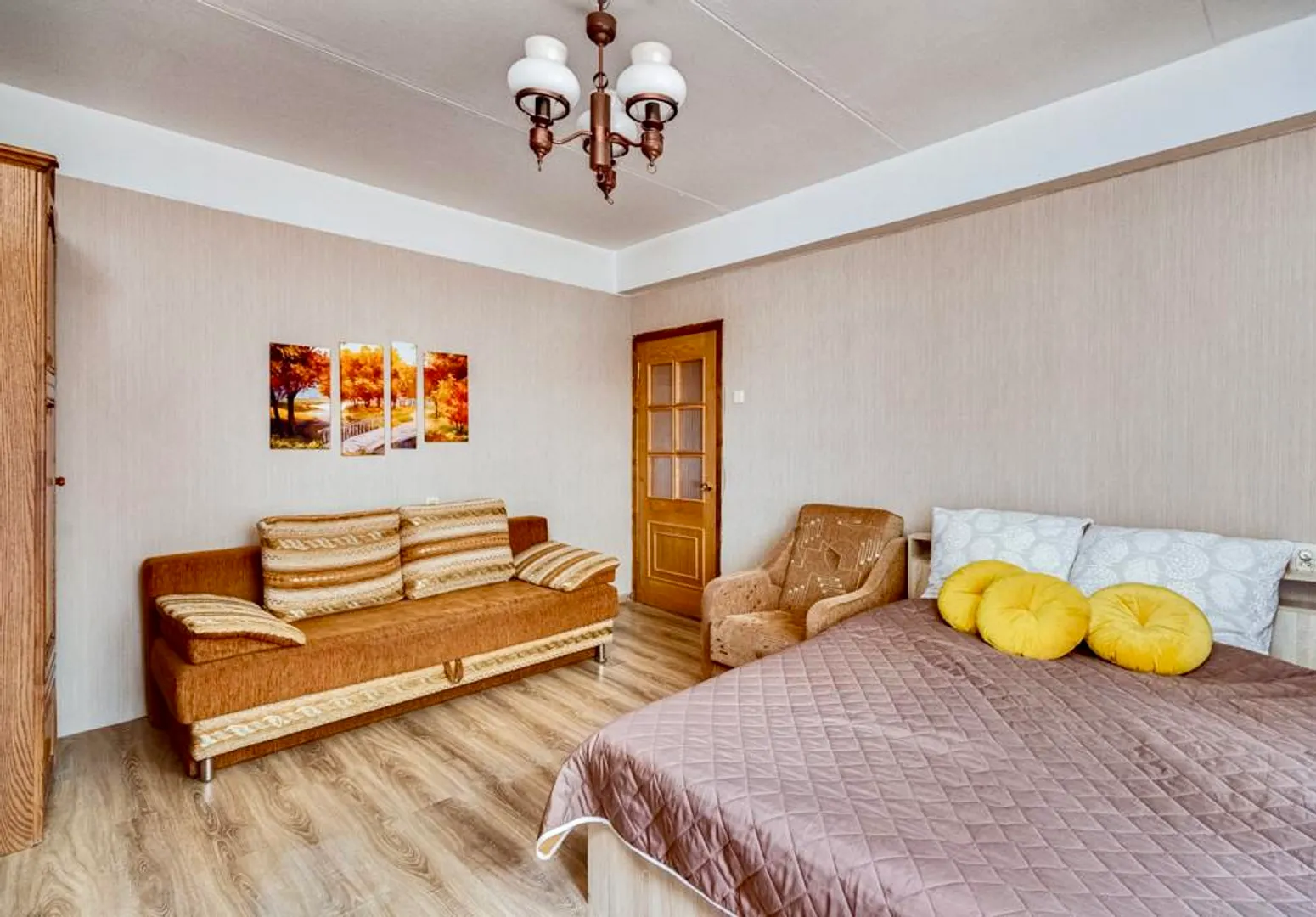 Светлая и уютная однокомнатная квартира, подарит вам ощущение радости и лета в моменты вашего проживания! В квартире может проживать как один человек, так и семья из 4 человек, так как есть удобная двуспальная кровать и двухместный раскладывающий диван.