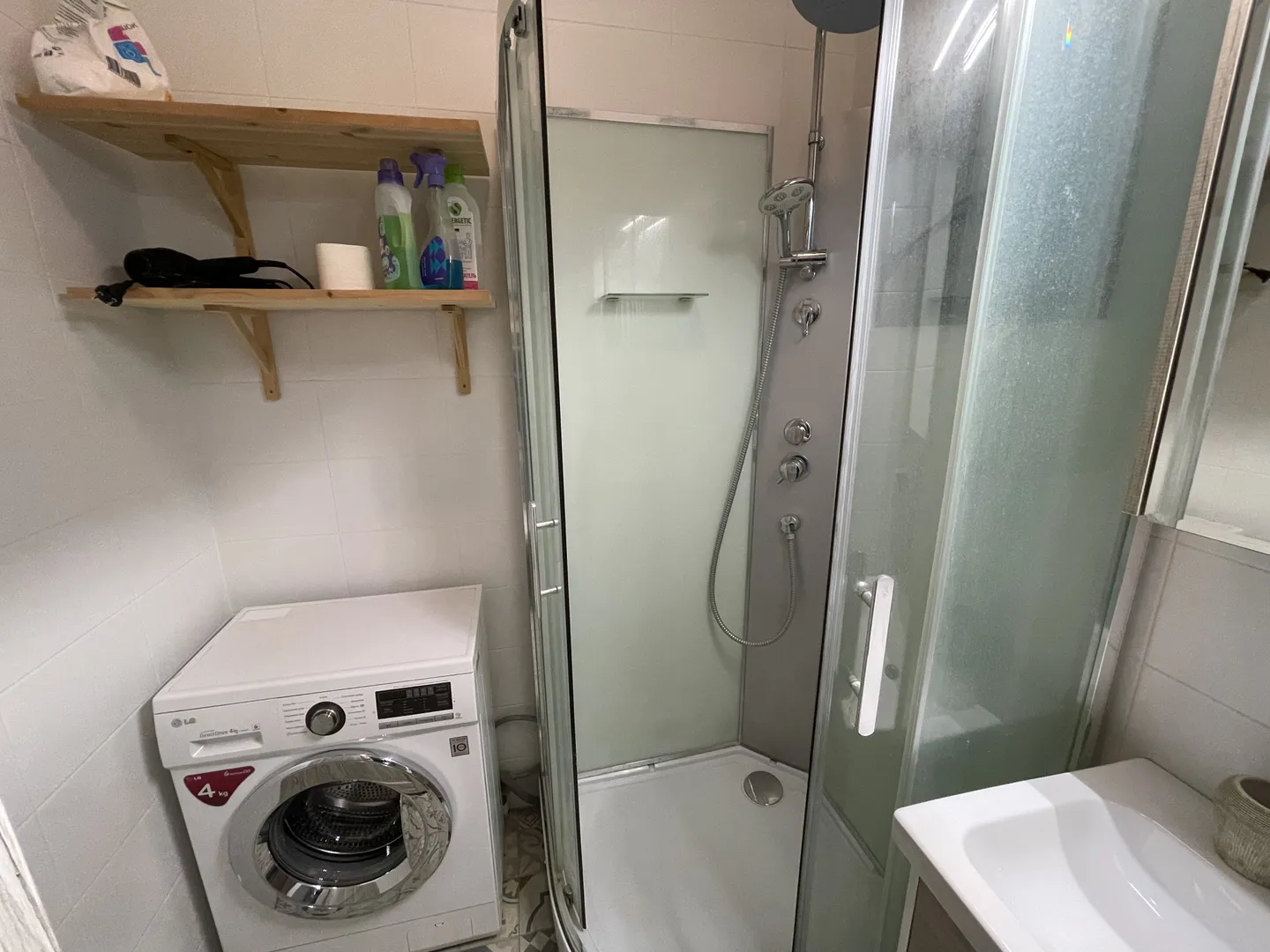 - Ванная: душевая (гель для душа, шампунь, кондиционер для волос), фен, полотенце для ног, туалетная бумага, стиральная машина, стиральный порошок.