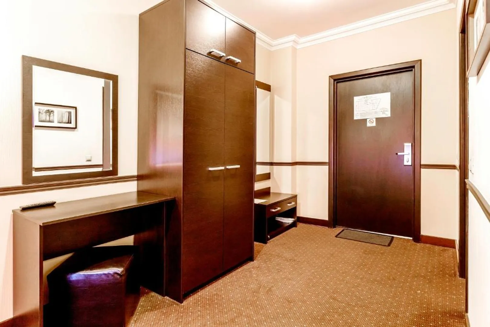 Позиционируется как три звезды, не соответствует им по моему мнению. Из минусов - отсутствие как кондиционера так и открывающегося окна чтоб впустить свежий воздух и проветрить. В туалете установлен чудо прибор неизвестного действия но очень шумный при любом использовании воды - унитаз раковина кабинка. В кабинке плохой слив воды, пока ополаскиваешься стоишь в собственной грязной воде. В общем отель на троечку а не на три звезды. И проблема с розетками - их не хватает категорически.