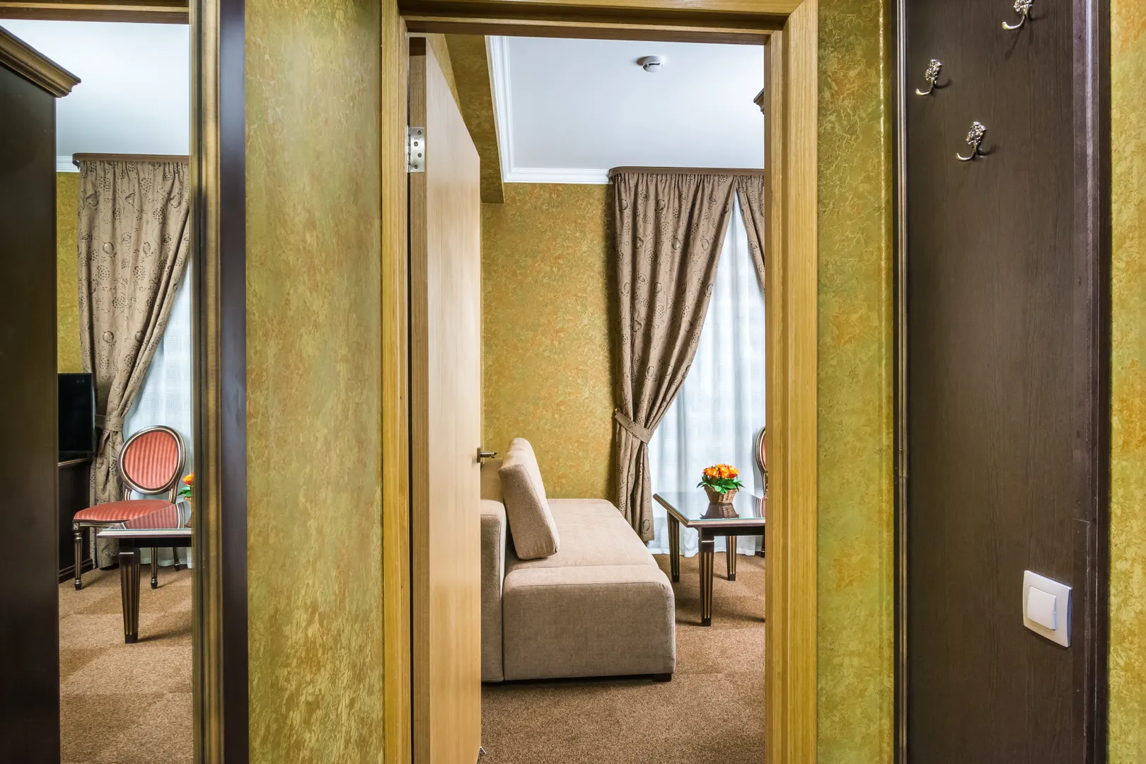 Просторный и элегантный номер "Люкс" площадью от 22 кв. м создан для комфортного и длительного проживания. Здесь вас ждет идеальное сочетание уединенного покоя и современной функциональности.
