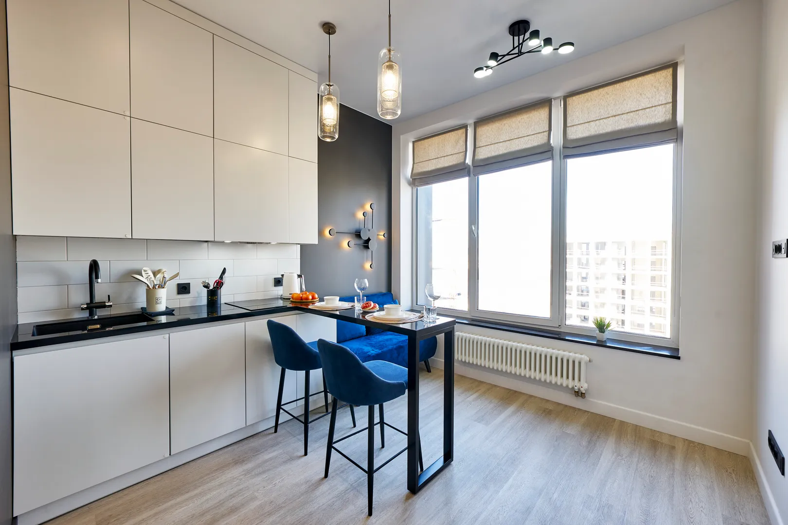 1-комнатная квартира дизайнерский евроремонт и отдельная кухня.