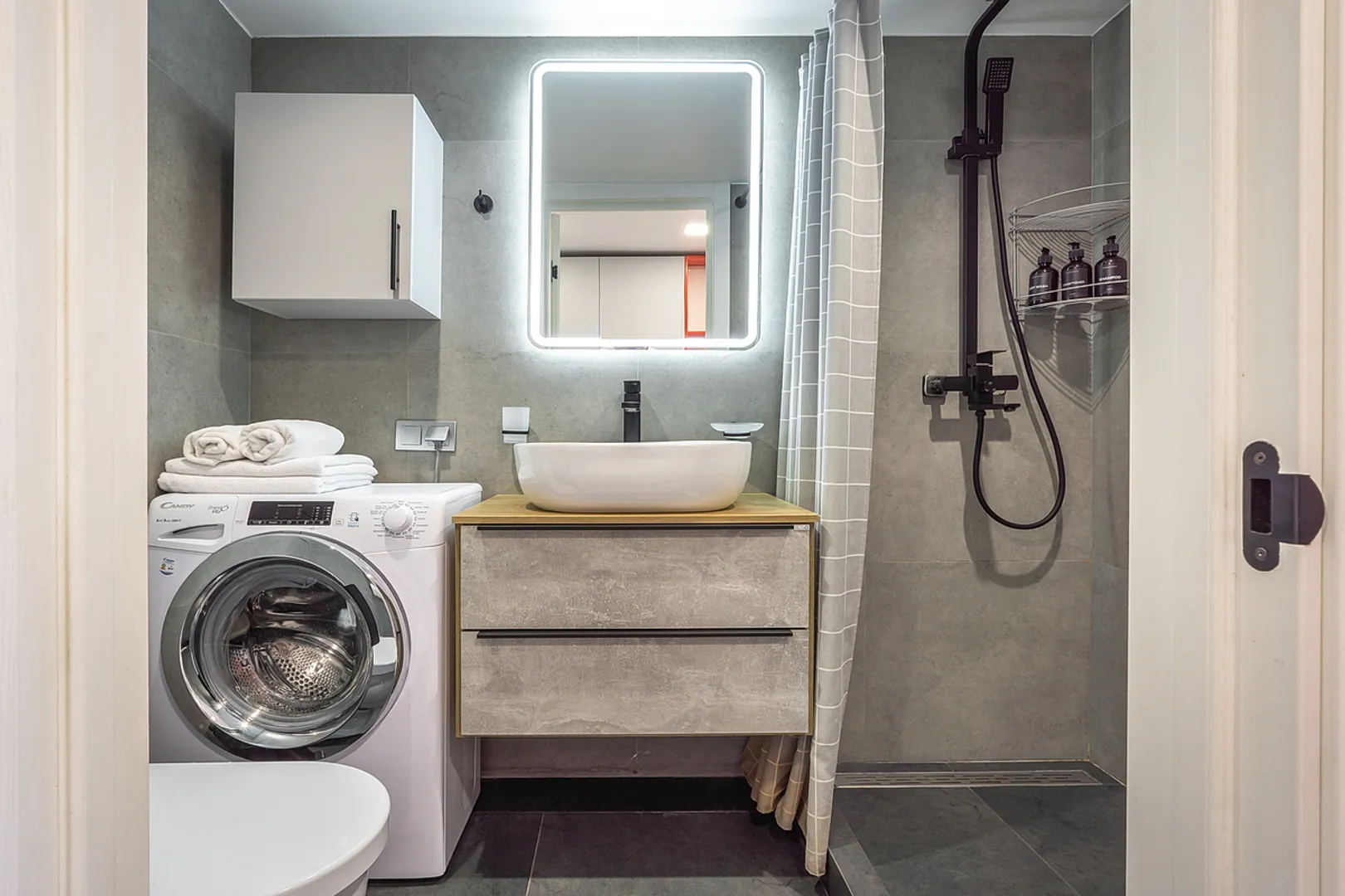 - Шампунь, гель для душа, мыло и стиральный порошок в ванной комнате.