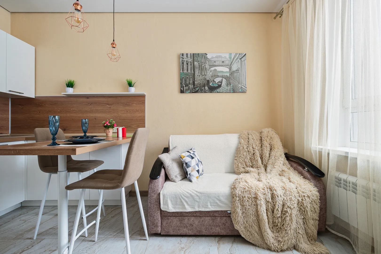 красивая квартира , удобное расположение ,бесконтактный доступ , что было важно , потому что приехали поздно и не знали точное время приезда