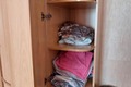 Дом старенький, в подъезде запах. Дверь закрывается изнутри засовом. В общей комнате имеется шкаф, в котором все полки заняты, поэтрму вещи развешивали на креслах