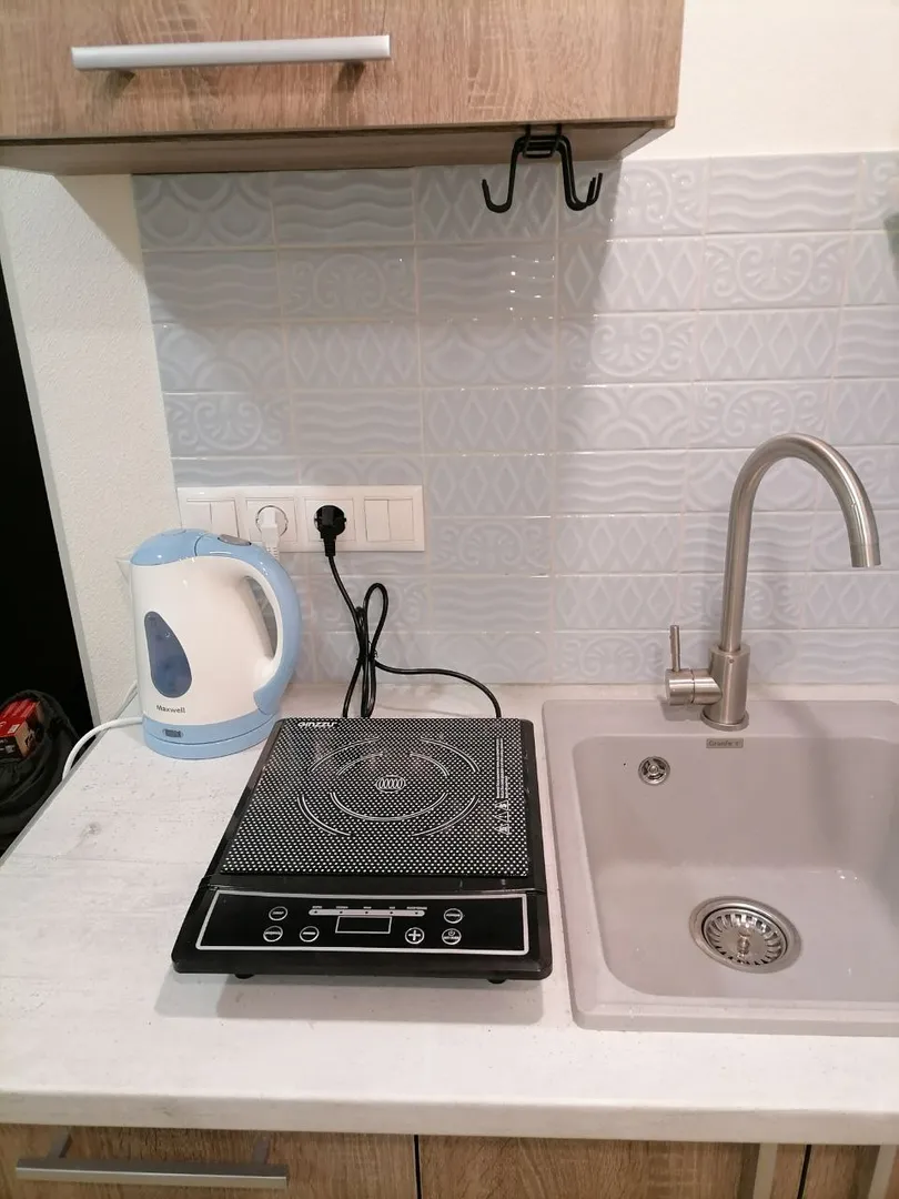 Только что сделан ремонт. Мебель и техника новые. Студия оборудована всем для комфортного проживания. Индукционная плитка, микроволновка, холодильник, стиральная машина, сушилка, фен, утюг и гладильная доска. Wi-Fi и smart tv с подпиской на Кинопоиск.