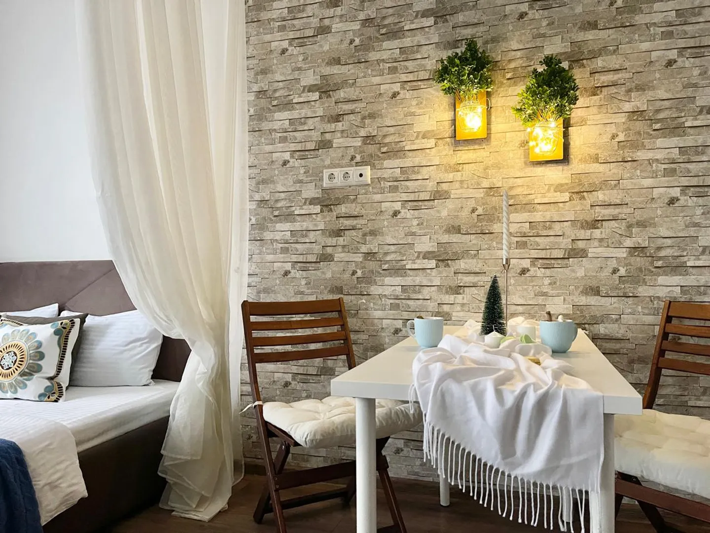Пожалела о заселении в это номер сразу. О том, что парковаться нужно более чем за километр от дома не предупредили. При входе в апартаменты стояли мешки с туалетной бумагой и мусором. Звукоизоляция ровна нулю, слышны шаги из соседнего помещения. Посуда, это всё, что осталось от бабушки. Полотенцесушители не работает. Туалетная бумага - остатки рулона. В шкафчика в ванной грязные тряпки. В морозилке рваные использованные пакеты. Матрас настолько дешёвый, что ощущаешь пружины. Ко всему, в руках загорелся фен. На что мне сказали, - "Странно, ему нет года. Извините." Апартаменты - ночлежка. Не ленитесь, доплатите и заселяйтесь в отели со звездами.