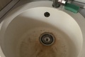 Мятое постельное бельё, грязная раковина, посуда жирная