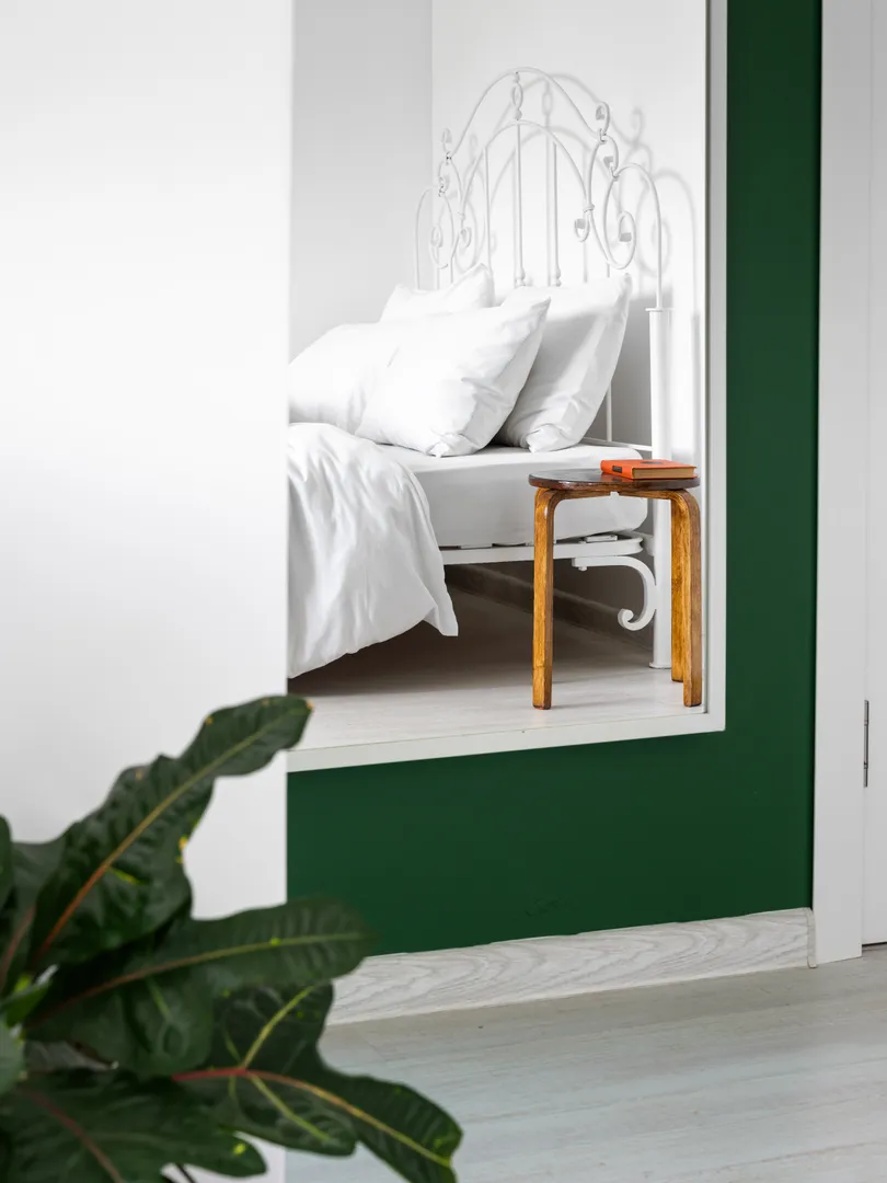 В спальной зоне вас ждет удобная двуспальная кровать с ортопедическим матрасом, чистое и свежее постельное белье, шторы блэкаут.
