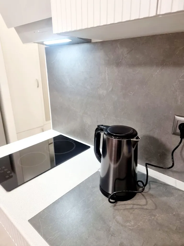 В студии есть все необходимое для проживания. Метро недалёко (10 мин). Хороший новый район.