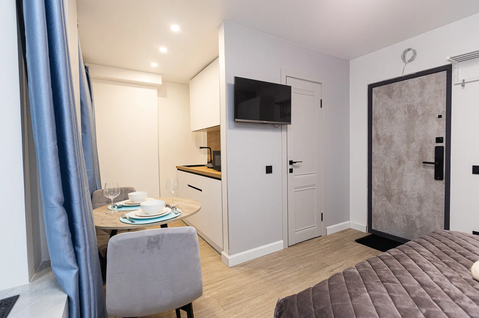 Студия дизайнерский евроремонт и кухонная зона.