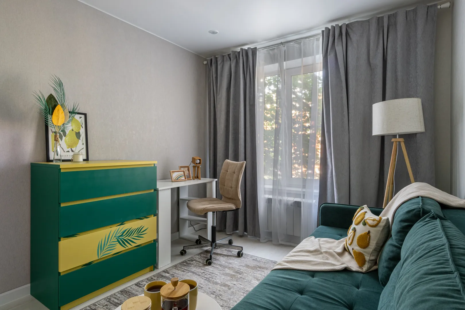 - Во второй комнате размещен двуспальный диван (160х200) и рабочий стол, где можно посидеть за ноутбуком.