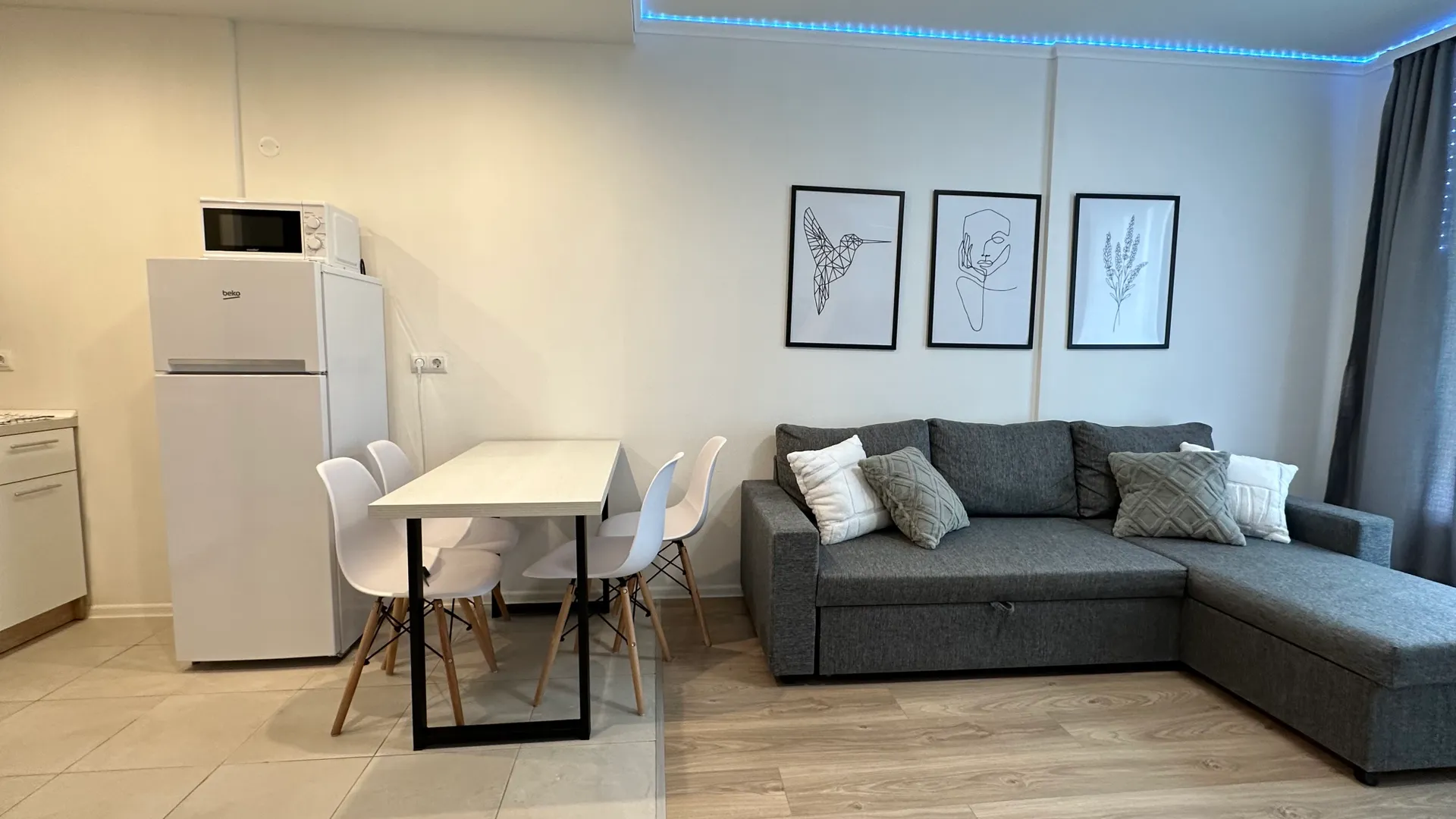 - Современные удобства, включая ванную комнату с ванной, телевизор со смарт тв, бесплатный wi-fi, кондиционер, стиральная машина и утюг с гладильной доской.