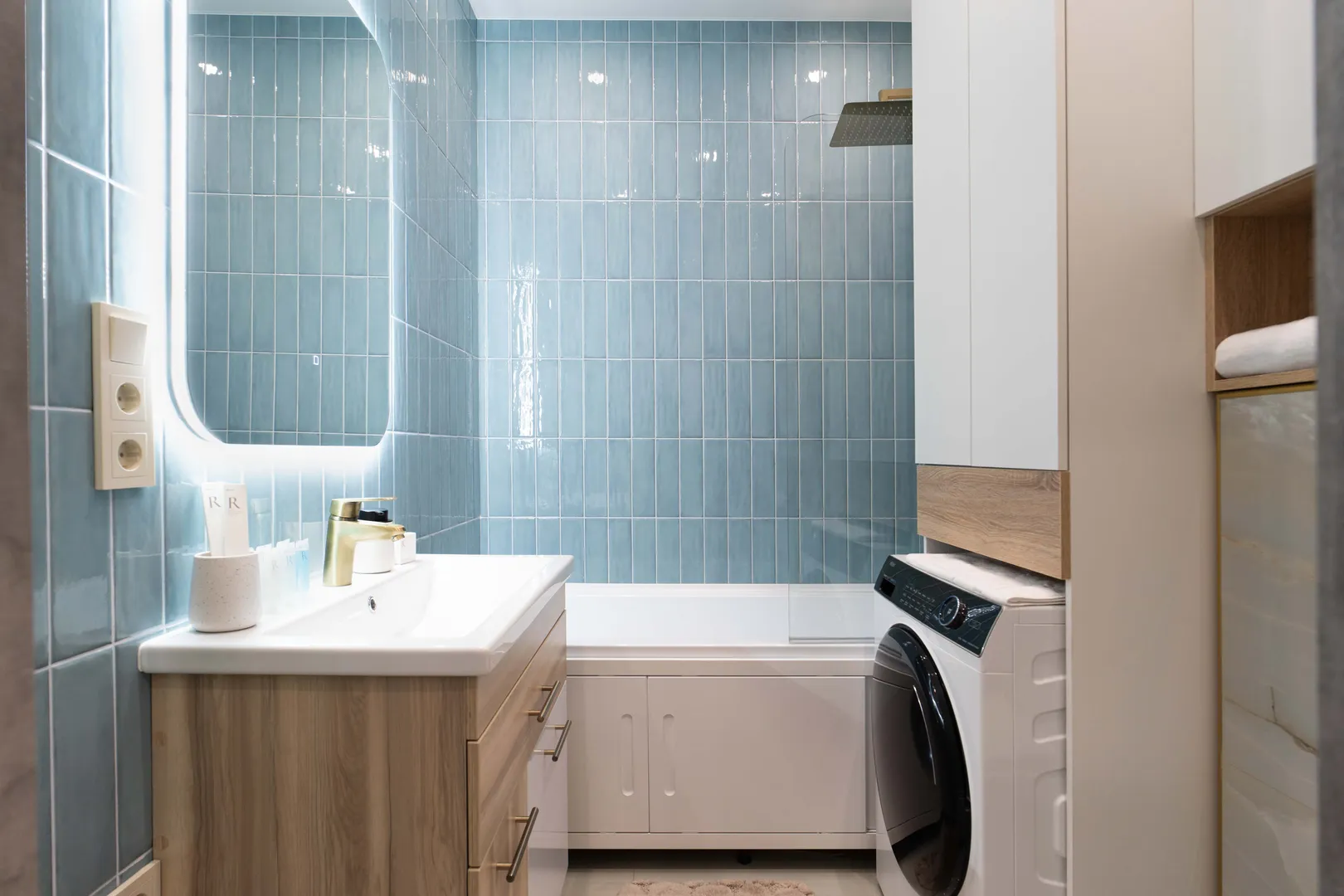 - Опрятная ванная комната с блестящими кранами и мягкими полотенцами, гигиеническими и косметическими наборами. Дополнительно присутствуют фен, утюг, сушилка.