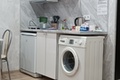 Кухня меблирована полностью, посуда, чайник, микроволновка, плита, стиральная машина.
