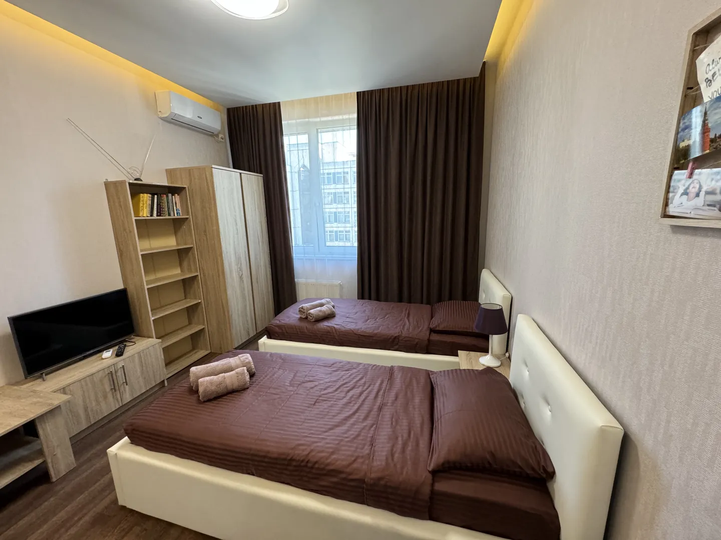 Уютные дизайнерские апартаменты апартоника c двумя односпальными кроватями, со своей кухней, санузлом, стиральной машиной, на 3 этаже