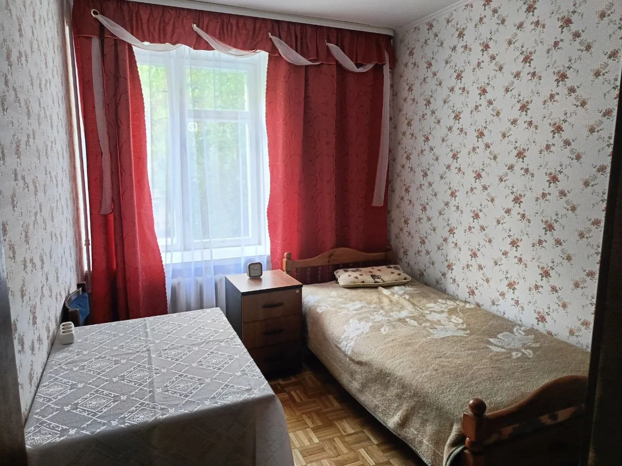 В апартаментах 3 спальные комнаты с необходимой мебелью и бытовой техникой для комфортного проживания, работы и отдыха. В одной комнате односпальная кровать, во второй – двухместный угловой диван, гостиный уголок с телевизором (smart-tv) и балкон, в третьей – двухместный диван и кондиционер. Во всех комнатах имеются шкафы для хранения вещей.
