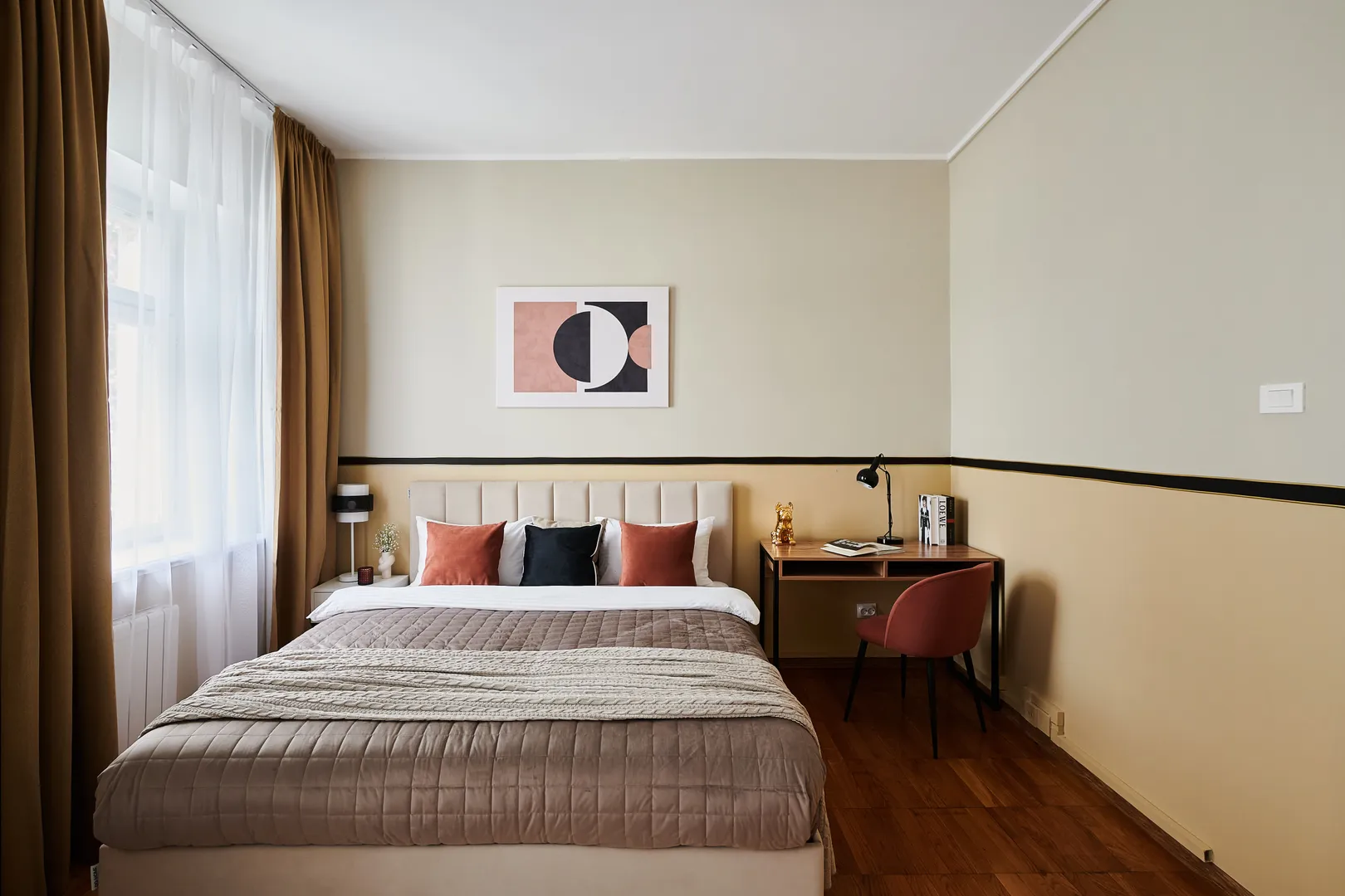 Пятикомнатная квартира с домашним кинотеатром расположена на престижной Большой Бронной улице, между Тверской улицей и Патриаршими прудами. Просторная квартира площадью 215 м2 идеально подходят как для комфортного проживания семьи, так и для временного размещения гостей. Они сочетают в себе роскошь и функциональность, созданные для удовлетворения всех потребностей современных жителей.