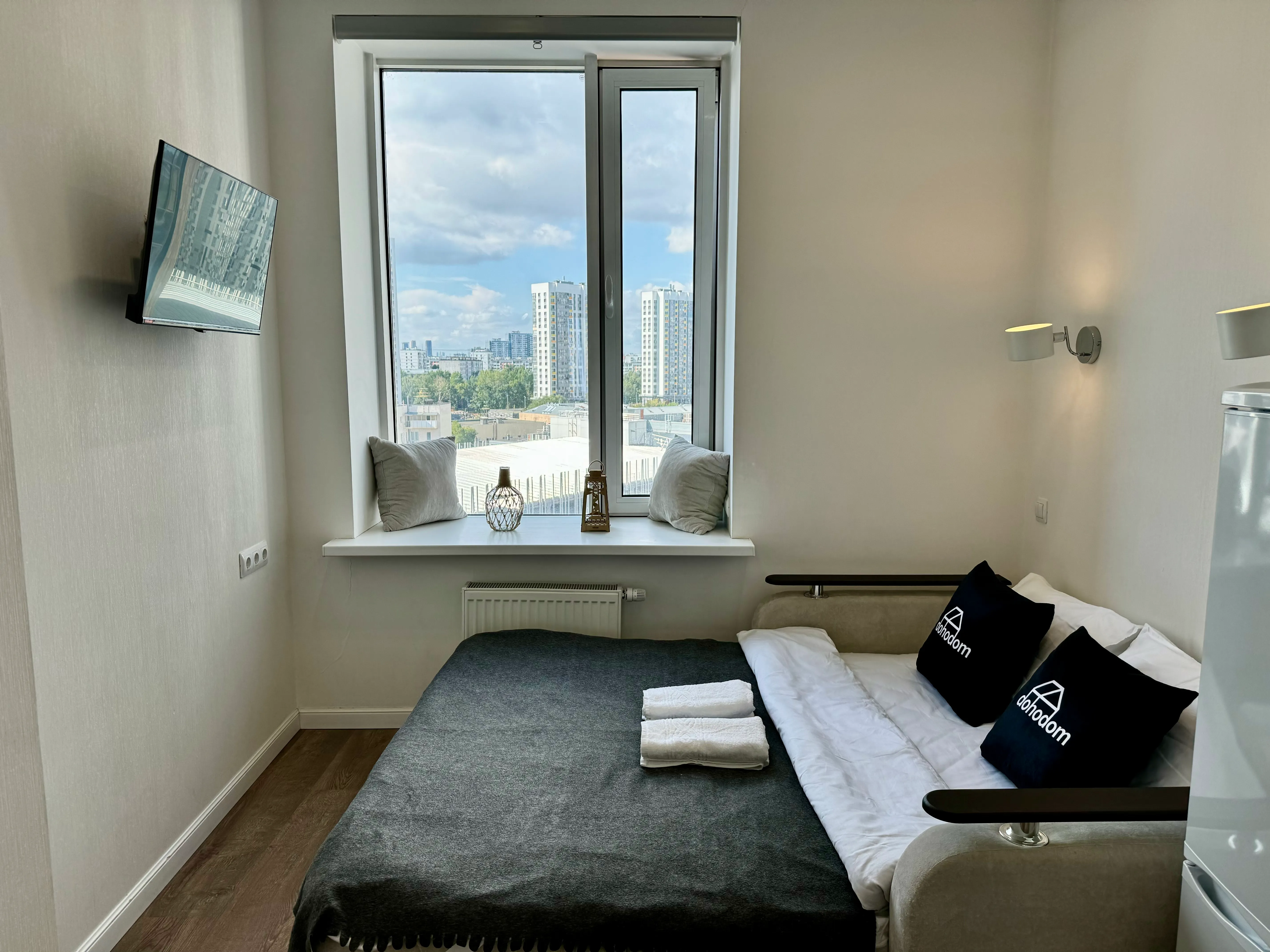 Просторная комната, есть все необходимое для проживания. В доме находятся аптека, магазины, кафе. Рядом красивая набережная и много ресторанов и кафе, метро.