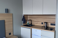 - Кухня с холодильником, плитой, микроволновкой, чайником и посудой