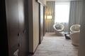 Просторный двухкомнатный номер, оформленный в пастельных тонах, обставлен мебелью в шведском стиле.