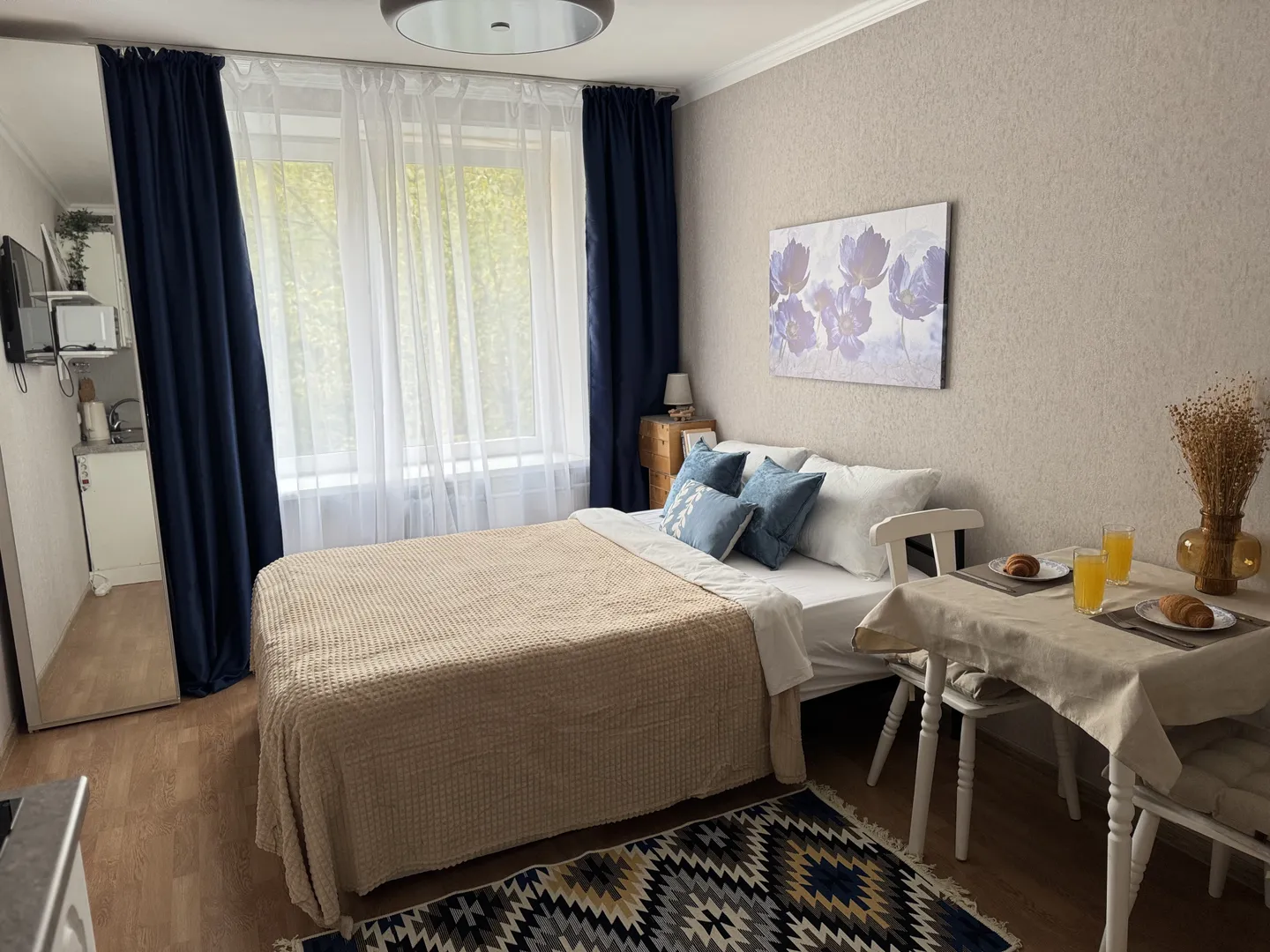 - Вся необходимая техника: телевизор -смарт-тв, микроволновая печь, стиральная машина, электрический чайник, утюг.