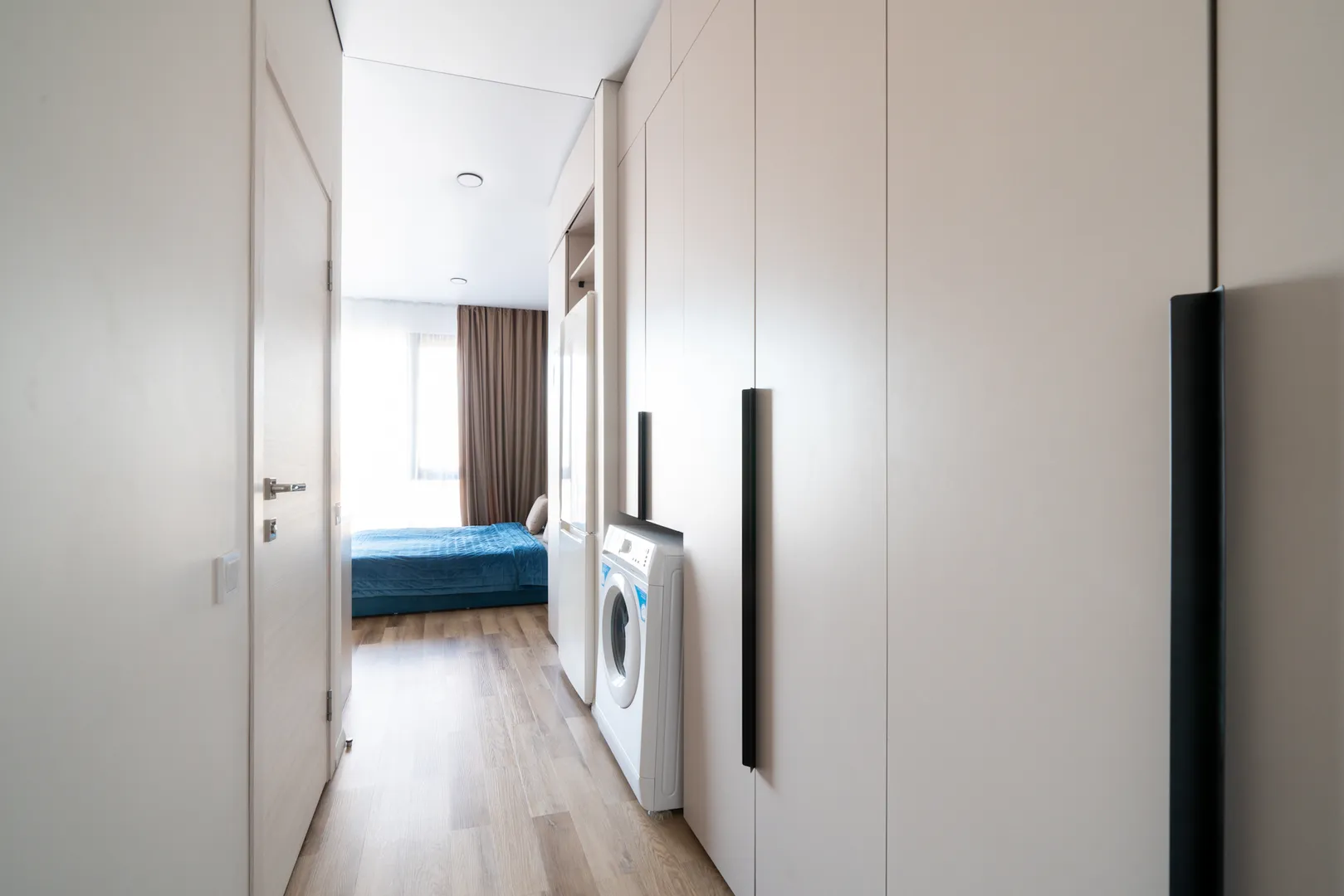 Кондиционер, телевизор Smart TV со всеми необходимыми приложениями и браузером, Wi-Fi, фен, утюг, гладильная доска, сушилка для вещей, стиральная машина, большое количество мест для хранения вещей.
