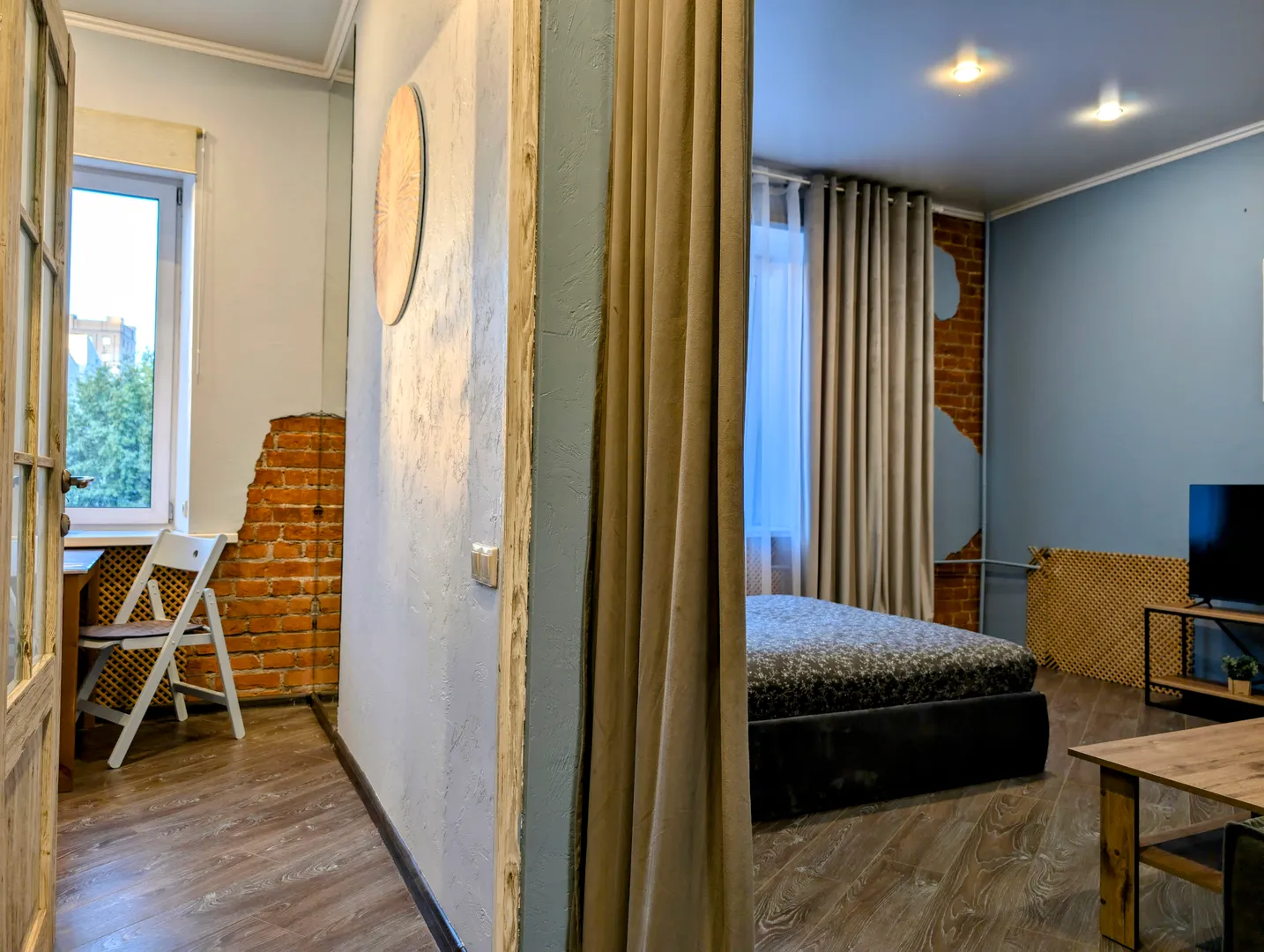 Квартира соответствует фото. Приятный запах, ощущаешь себя комфортно. Матрас мягкий, но ребенку было хорошо, мы спали на диване. Шторы отлично защищают от солнечного света. Маленький нюанс, что квартира на 4 этаже, а лифта нет, мы знали это заранее, поэтому не расстроились.