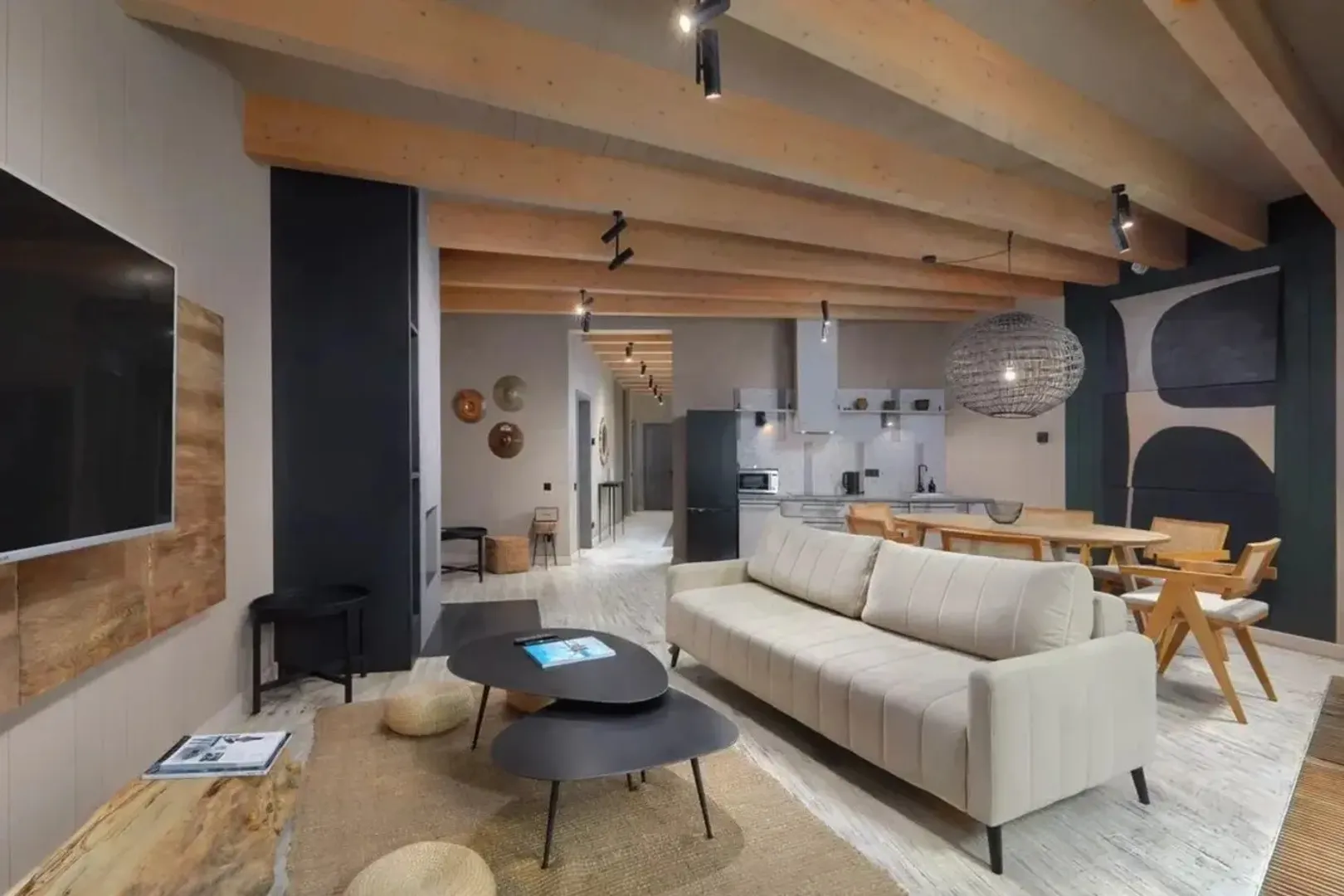 В центре коттеджа — просторная гостиная с мягким диваном, кухней и большим обеденным столом на 8 персон.В коттедже расположены 2 спальни с двуспальными кроватями и мягкими матрацами для полноценного расслабления и комфортного сна.