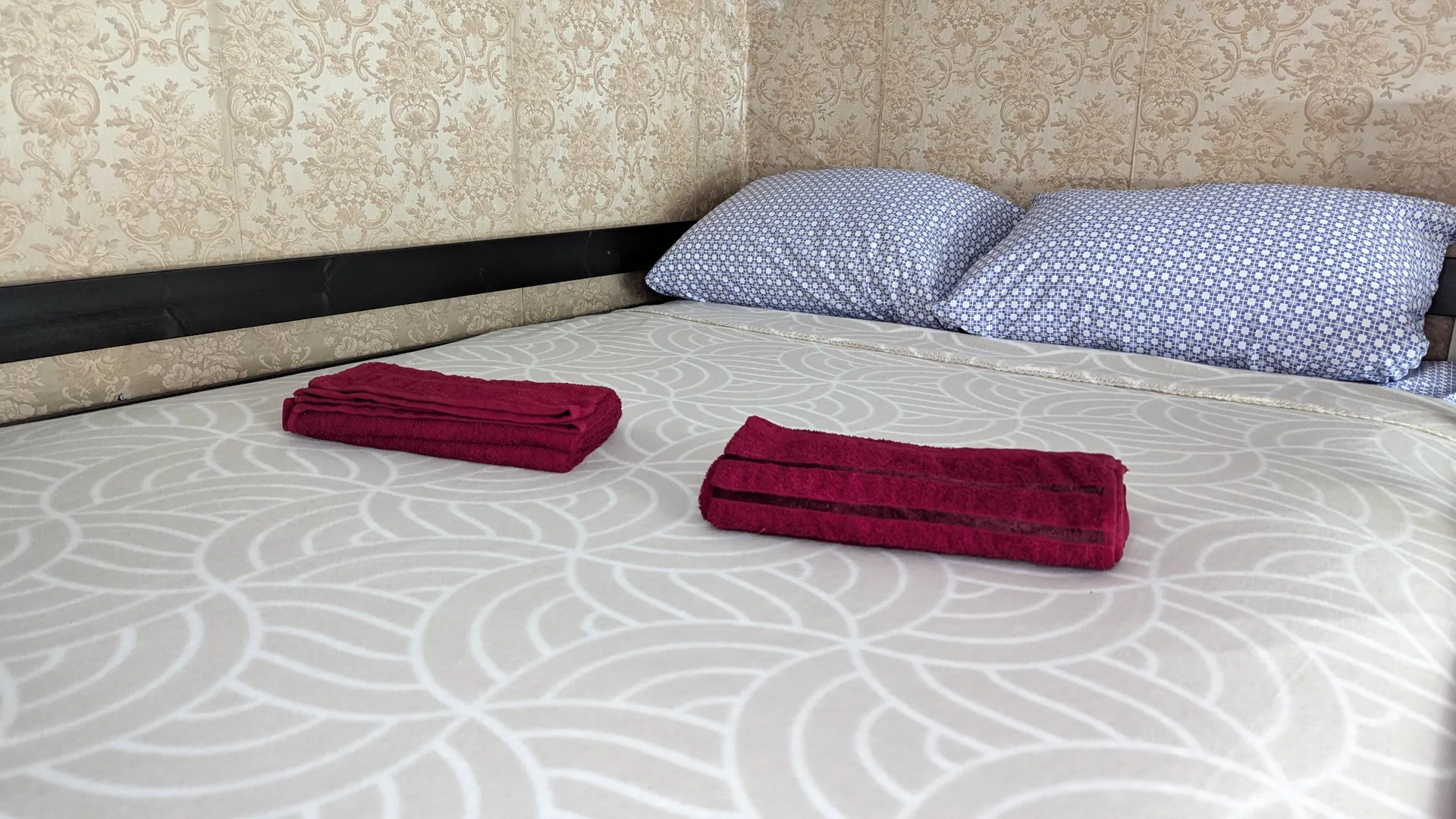 -Чистое постельное бельё, набор полотенец тапочки;