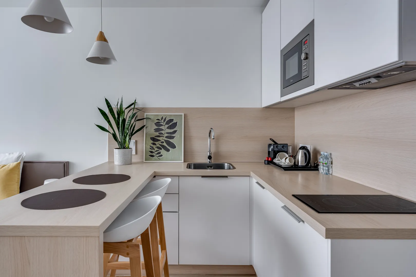 Апартамент дизайнерский евроремонт и кухонная зона.