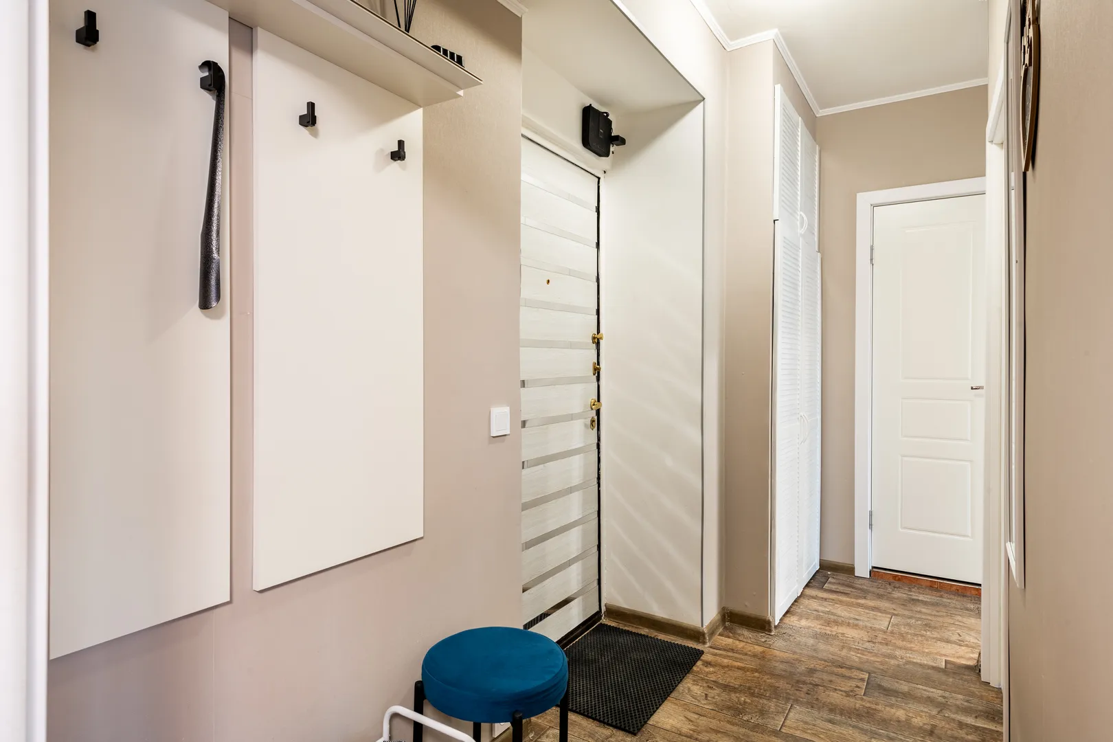 Понравилось расположение квартиры. Очень близко от метро. Удобное заселение, чисто внутри. Довольно много пространства.