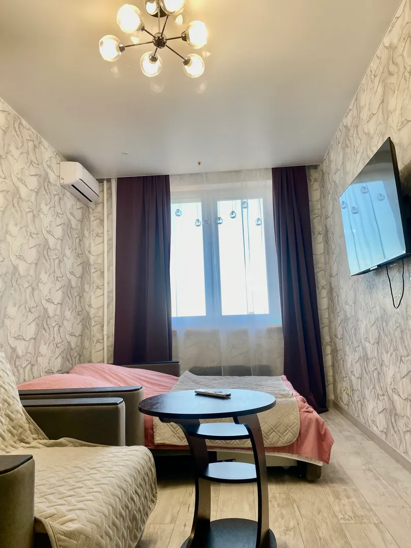 Квартира оборудована всем необходимым для комфортного проживания, включая кондиционер для поддержания оптимальной температуры в любое время года. В качестве спального места установлена диван, обеспечивающая комфортный сон.